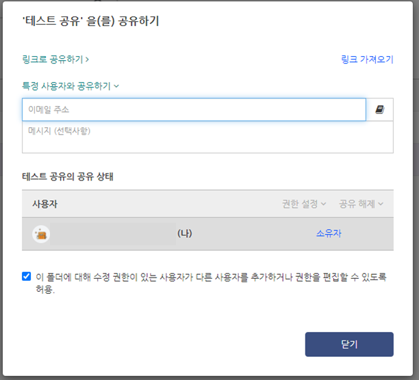 폴더를 만든 나와 초대를 한 사용자가 승인 대기 상태로 표시 됩니다.